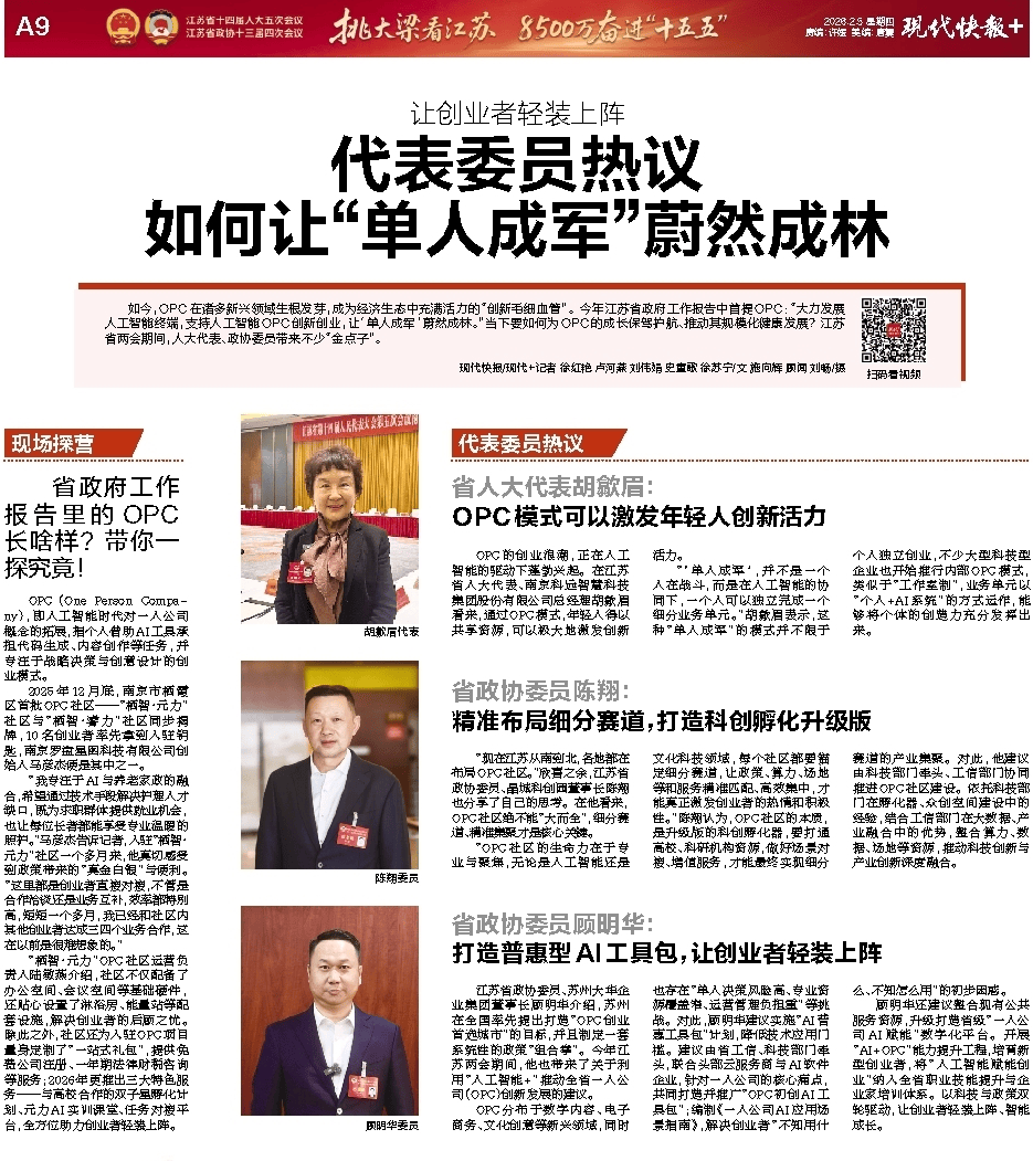 环绕人工智能财产律例完美、激活工业数据动能、培育复合型人才等环节议题建言献策,现代快报刊发胡歙眉代表对OPC模式的独到解读,她,让“人工智能 +”成为现代化财产系统的焦点引擎,聚焦“十五五”开局提出系统性。现代快报、南京日报、南京晨报等支流聚焦胡歙眉代表,相关被现场沉点记实并。年轻人得以共享资本,此外,她但愿能取更多企业和高校不竭切磋,以“轨制+手艺”双轮驱动破解数据共享难题,查看更多